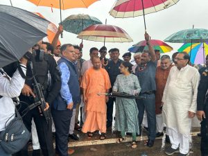 बरसते पानी के बीच घटनास्थल का भी जायजा लेने पहुंचे मुख्यमंत्री योगी आदित्यनाथ
