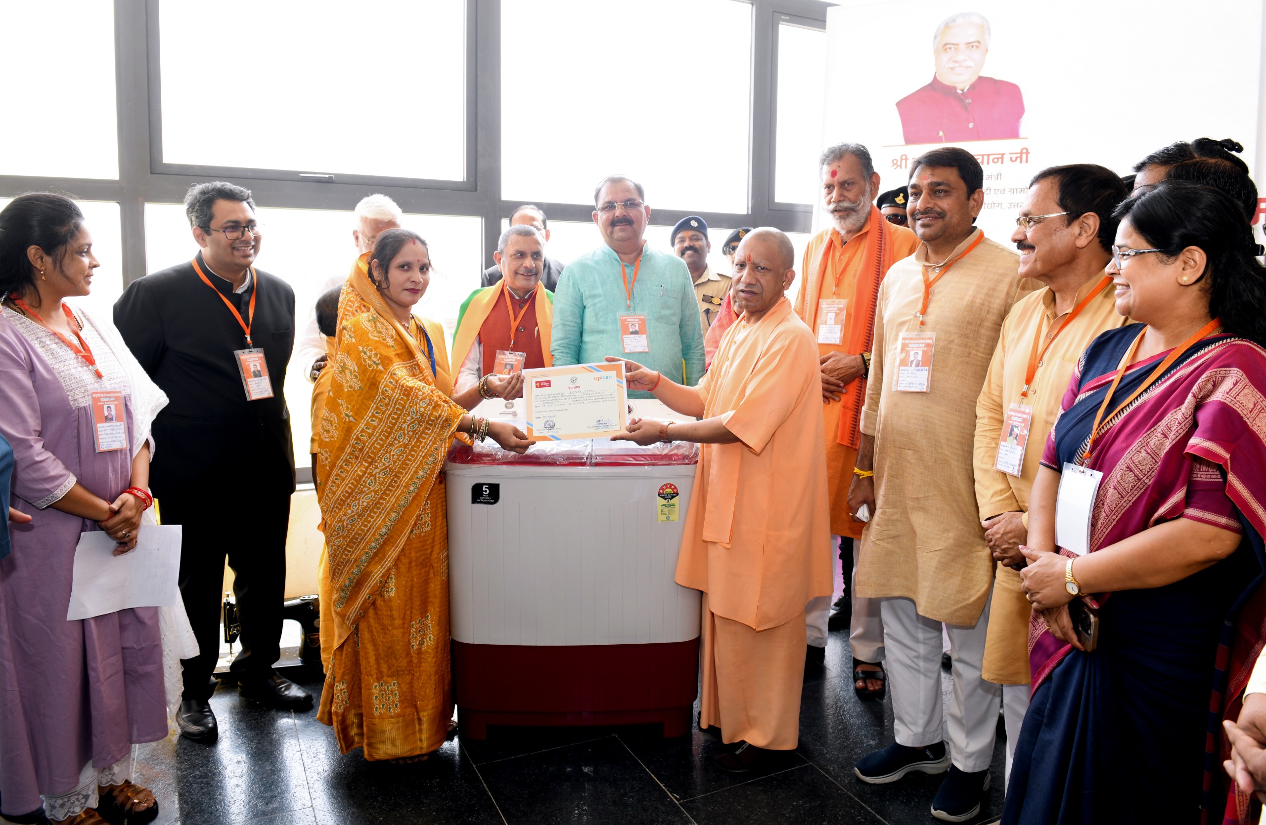 झांसी में सीएम योगी ने मुख्यमंत्री युवा उद्यमी विकास अभियान योजना के लाभार्थियों को दिए चेक