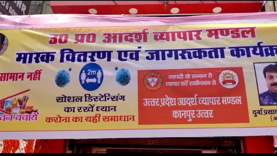 उo प्रo आदर्श व्यापार मंडल ,उत्तर कानपुर द्वारा कोरोना जागरूकता अभियान एवं मास्क वितरण