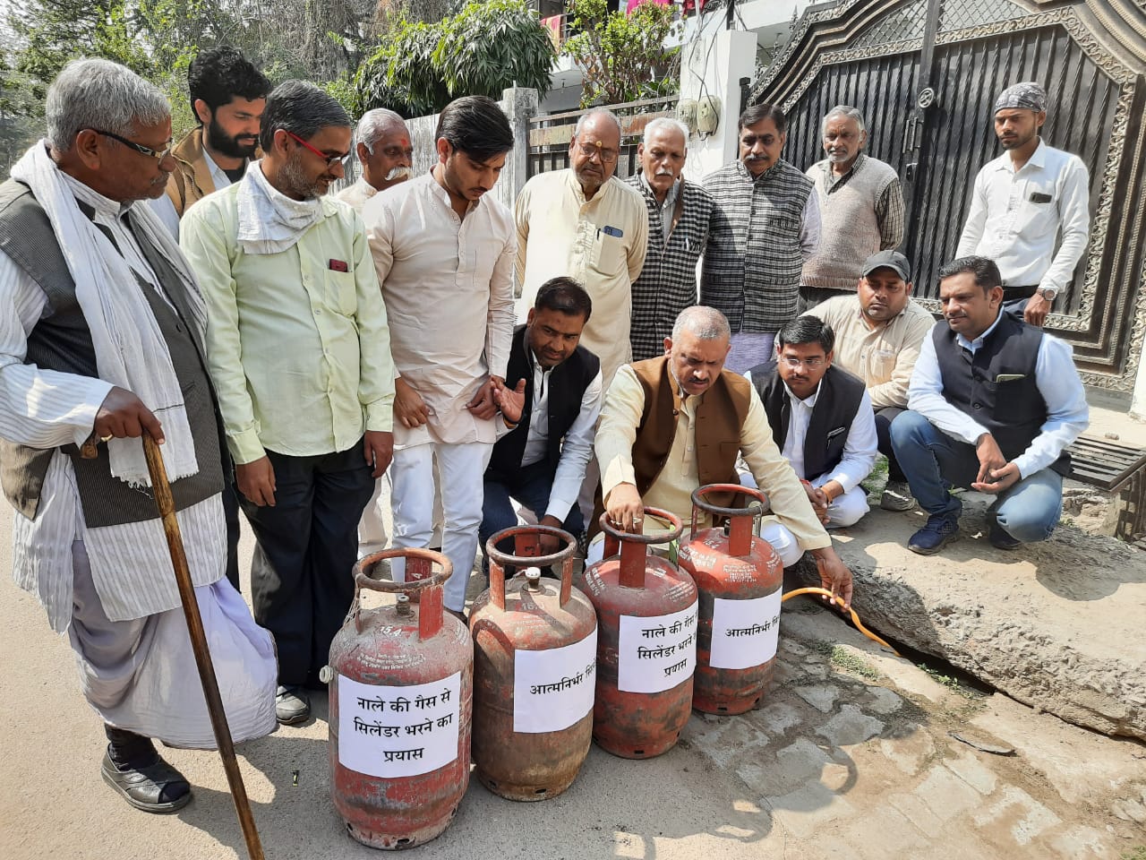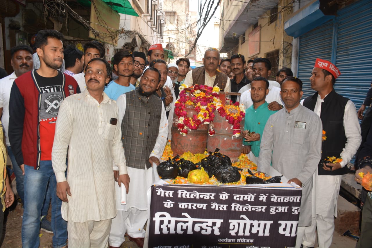 आर्यनगर विधायक अमिताभ बाजपेई द्वारा हीरामन का पुरवा व हरबंस मोहाल क्षेत्र में सिलेंडर शोभा यात्रा निकाल के सिलेंडर के…