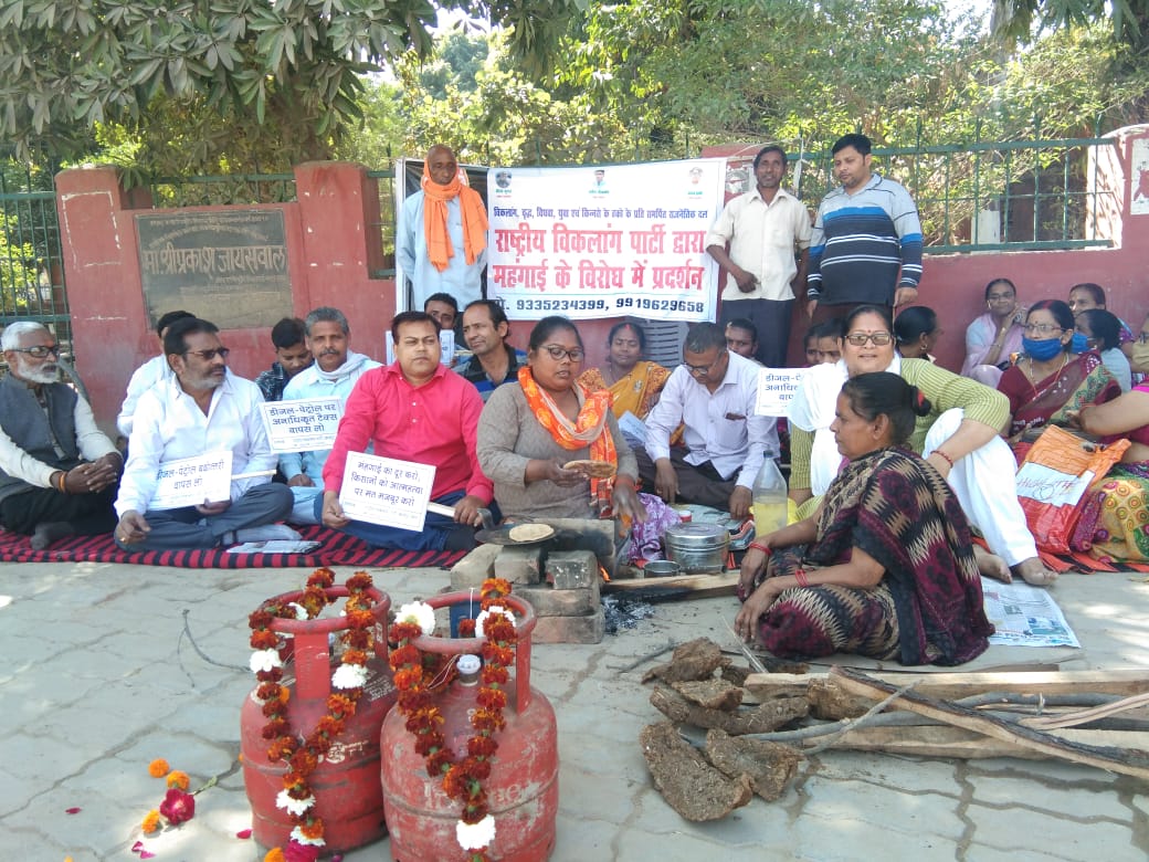 कानपुर | राष्ट्रीय विकलांग पार्टी ने मंहगाई के विरोध में उज्ज्वला गैस सिलेन्डर उल्टा रख कर चूल्हे पर लकड़ी व…