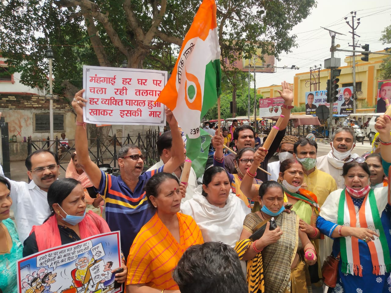 महंगाई के विरोध में कांग्रेसी महिलाओं ने विरोध प्रदर्शन किया