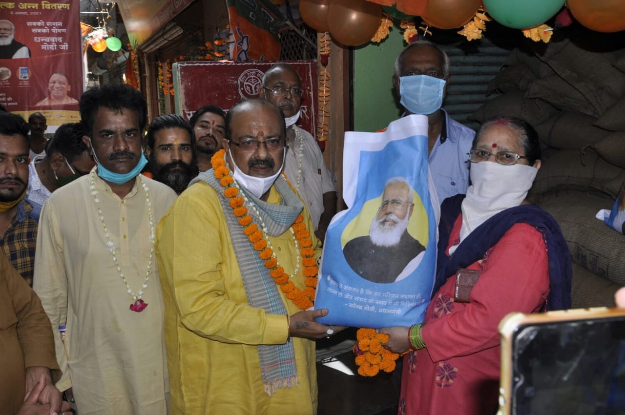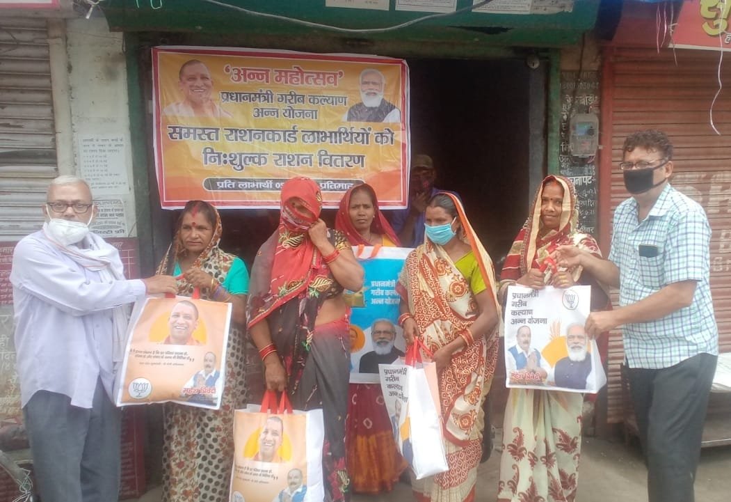 कानपुर, सबको राशन सबको पोषण प्रधानमंत्री गरीब कल्याण अन्न योजना के अन्तर्गत नि:शुल्क अन्न वितरण महोत्सव के अवसर पर अनवरगंज…