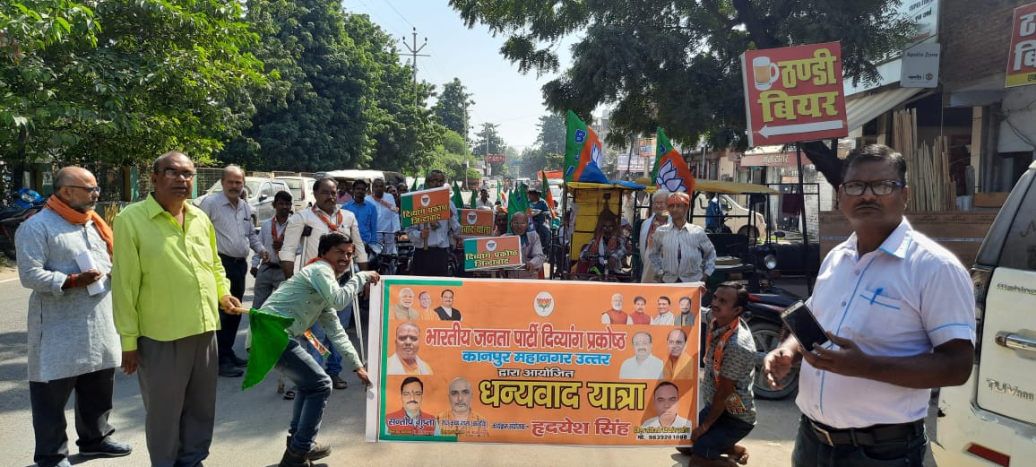 भारतीय जनता पार्टी दिव्यांग प्रकोष्ठ कानपुर महानगर उत्तर द्वारा आयोजित सैकड़ों की संख्या में दिव्यांगजनों द्वारा धन्यवाद यात्रा निकालकर भारतीय…