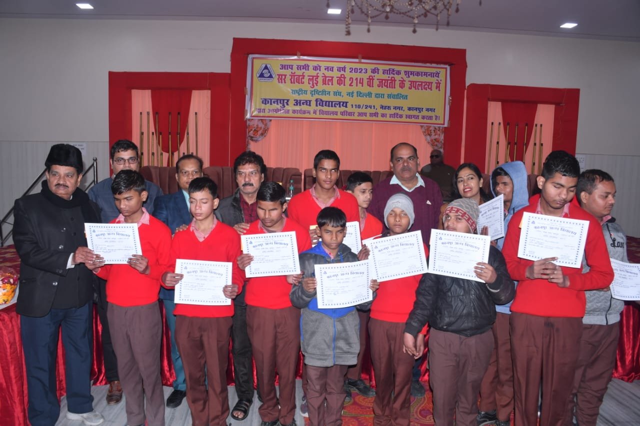 कानपुर, विद्यालय में सर लुई ब्रेल की 214 वीं जयंती के उपलक्ष्य में कई प्रतियोगिताओं जैसे ब्रेल रीडिंग राइटिंग (हिंदी…