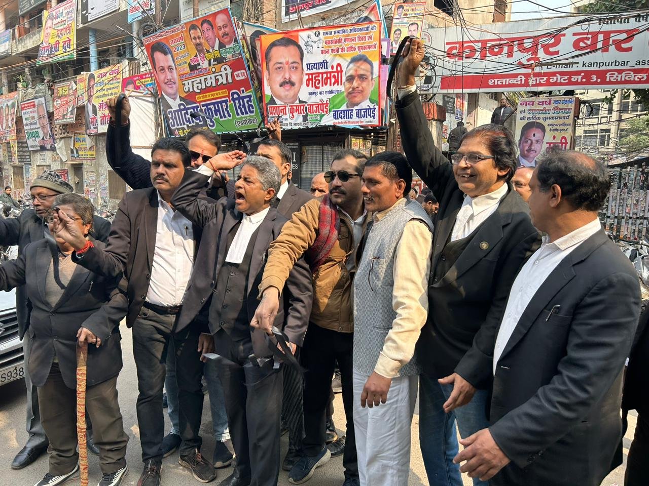 कानपुर, राज्य विधिज्ञ परिषद उत्तर प्रदेश के निर्देशानुसार अधिवक्ता पेंशन योजना अधिवक्ता स्वास्थ्य बीमा कवर आदि मांग को लेकर अधिवक्ताओं…