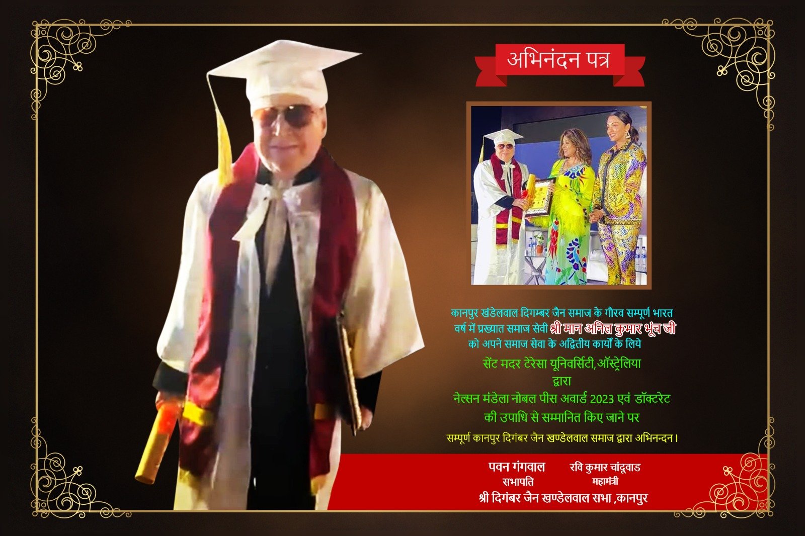 कानपुर खंडेलवाल दिगम्बर जैन समाज के गौरव सम्पूर्ण भारत वर्ष में प्रख्यात समाज सेवी श्री मान अनिल कुमार भूंच जी…