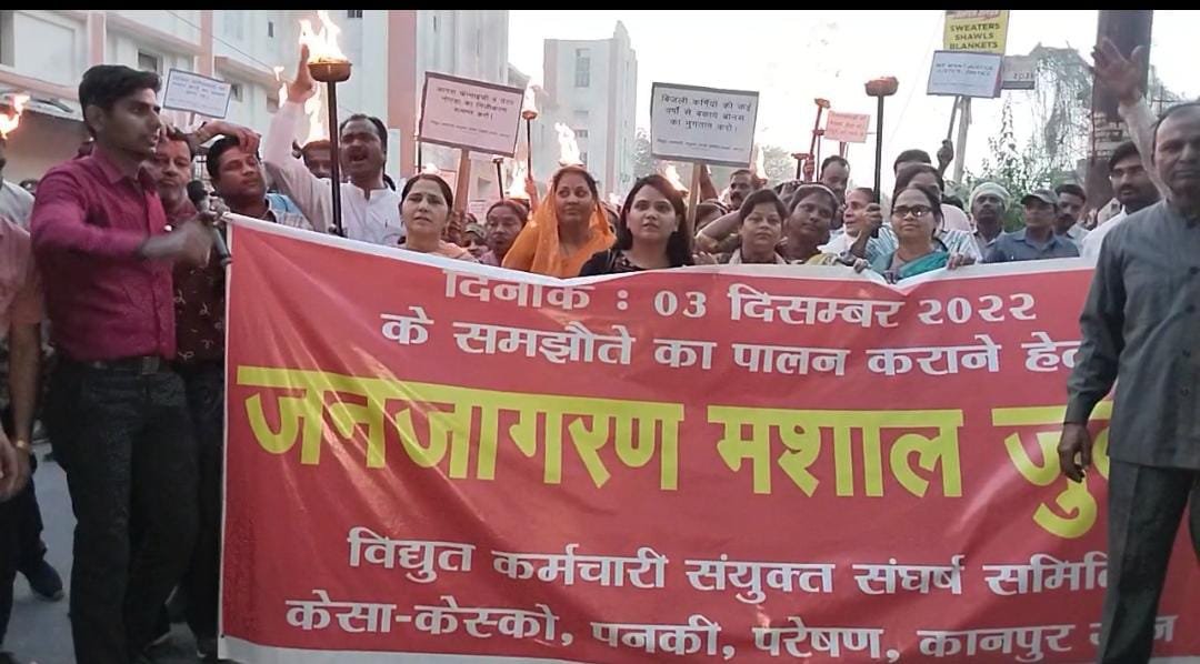 कानपुर: बिजली कर्मचारियों ने मशाल जुलस निकालकर सरकार को दी चेतावनी,,विद्युत कर्मचारी अपनी 13 सूत्री मांगों को लेकर लगातार धरना…