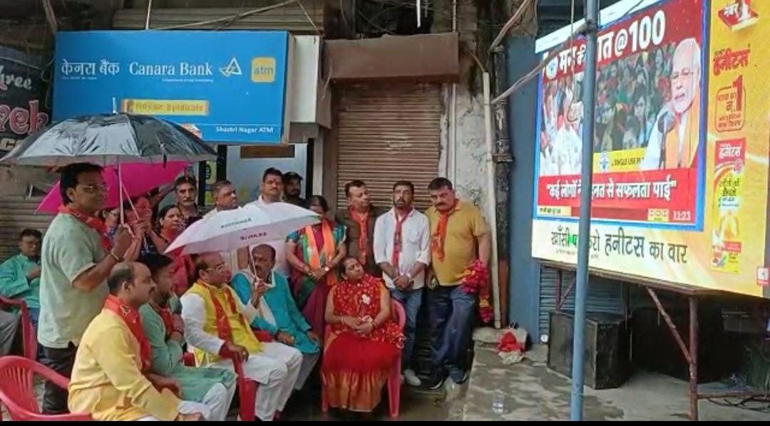 विधायक सुरेंद्र मैथानी एवं जिला अध्यक्ष सुनील बजाज ने बरसते पानी में भीगते हुए मोदी जी के सौवे मन की…