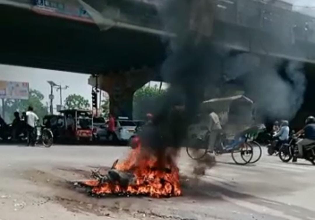 कानपुर: चलती बाइक में लगी आग ,बाइक सवार ने बाइक से कूद बचाई जान । देखते ही देखते बाइक बनी…
