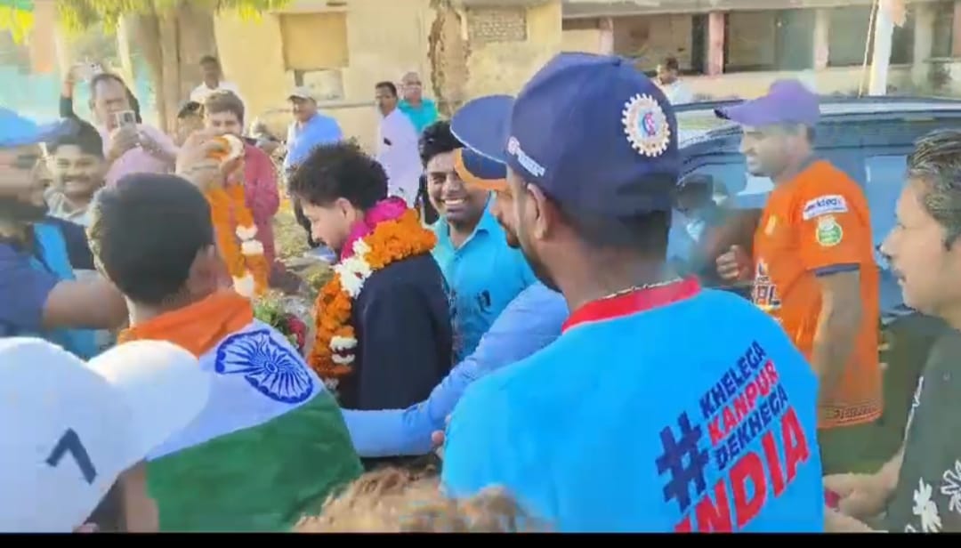 ढोल नगाड़ों के साथ चाइनामैन गेंदबाज कुलदीप यादव का भव्य स्वागत व अभिनन्दन किया गया कोच कपिल पांडे ने बुके…