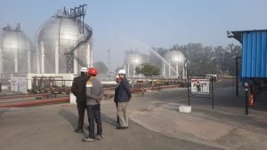 उन्होंने बताया कि उक्त मॉक ड्रिल के दौरान हॉटन नम्बर-06 आरोबी के मेन्टीनेन्स की कार्यवाही चल रही थी, इसी दौरान हॉटन में एल.पी.जी. लीकेज हो गई और साथ ही साथ हॉटन नम्बर-06 को आग की चपेट में ले लिया। वहाँ पर मौजूद कारखाने के कर्मकारों ने तुरन्त 10 किग्रा0 फायरेक्स चलाया, साथ ही 75 किग्रा० का फायरेक्स भी चलाया गया। चूंकि आग लगातार बढ़ रही थी, इसलिए तत्काल आटोमेटिक स्प्रिकंरल सिस्टम चलाने का निर्णय लिया गया। उक्त के अतिरिक्त हॉटन स्प्रिकंरल मयूर नोजल द्वारा ठंडा किया गया तथा कार्यस्थल पर कार्यरत सभी कर्मकारों को दुर्घटनास्थल से असेम्बली प्वाइंट पर इकट्ठा होने के लिए आदेशित किया गया। ड्रिल के दौरान 01 कैजुवल्टी हुई, जिसका चिकित्सक द्वारा प्राथमिक उपचार करने के उपरांत संयंत्र से बाहर अस्पताल में बेहतर उपचार हेतु भेज दिया गया। ड्रिल समाप्त होने के उपरांत संयंत्र के सुरक्षा कर्मचारी ने फायर इन्ट्री शूट पहनकर यह सुनिश्चित किया कि अब वहाँ पर कोई रिसाव नही है।