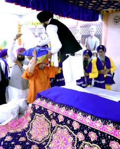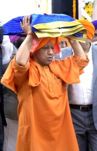 – सिर माथे पर गुरु ग्रंथ साहिब को धारण कर चले मुख्यमंत्री योगी, आवास में कराया आसीन