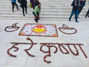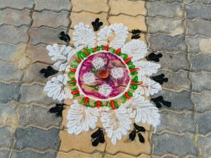 प्रभु श्री रामचंद्र के भव्य स्वागत हेतु संपूर्ण मंदिर परिसर में 108 आकर्षक रंगोलिया बनाई गई।