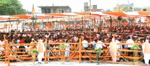 मुख्यमंत्री योगी आदित्यनाथ ने कहा कि 2017 के पहले अधिकांश क्षेत्रों में सूर्य अस्त होने के बाद थानों में भी ताले लग जाते थे। सामान्य नागरिकों की स्थिति किसी से छिपी नहीं है। अपराधी सोचते थे कि पिछली सरकारों की तरह ही यह सरकार भी रहेगी, लेकिन सरकार ने कहा कि हम जीरो टालरेंस की नीति पर चलेंगे। तुम अपराध बंद करो या कीमत चुकाने को तैयार रहो। ज्यादातर अपराधी जमानत तुड़वाकर जेल में चले गए। अब तो कह रहे हैं कि हमें जेल भी न भेजें। अब वहां भी जाने से डर रहे हैं। आप देख रहे होंगे, ज्यादातर अपराधी गली में तख्ती लगाकर घूम रहे हैं कि जिंदगी भर ठेला लगाकर पेट पाल लूंगा पर अब कुछ गलत काम नहीं करुंगा। बस एक बार जान बख्श दो। कानून का डर माफिया व अपराधियों पर न हो तो यह गरीबों, व्यापारियों व सामान्य नागरिकों का जीना मुहाल कर देंगे। यूपी में हर दूसरे दिन दंगा होता था। कांग्रेस व सपा की दंगा-कर्फ्यू पॉलिसी को जिस प्रदेश ने झेला है, वहां अब दंगा-कर्फ्यू नहीं चलेगा। यह प्रदेश अब उपद्रव बर्दाश्त नहीं करेगा, बल्कि परंपरागत उत्सव के साथ जुड़ेगा। उत्सव प्रदेश मोदी की गारंटी पर विश्वास करता है।