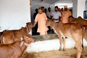 मुख्यमंत्री योगी आदित्यनाथ मंदिर प्रांगण स्थित गोशाला भी गए। यहां उन्होंने सभी गायों को गुड़ व चारा खिलाया। सीएम ने नाम लेकर गायों को पुकारा तो वे भी गोरक्षपीठाधीश्वर के पास दौड़ते चली आईं। सीएम ने गो सेवा करते हुए गोशाला की व्यवस्था को भी देखा।
