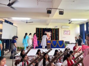 कार्यक्रम मे संगीत विभाग की छात्राओ के द्वारा सितार पर रामधुन और भजन का प्रस्तुतीकरण किया गया। संगीत की प्रस्तुतियो का संयोजन प्रो संगीता श्रीवास्तव, प्रो शालिनी त्रिपाठी, प्रो रूचिमिता पाण्डे, डा अल्का सिंह, डा निशान्त कुमार सिंह द्वारा किया गया।