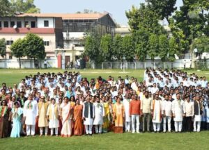 सुबह 11:15 बजे शिक्षा निकेतन की बालिकाओं ने मधुर स्वर में “पूर्ण वंदे मातरम” का गायन प्रारंभ किया। गीत की प्रत्येक पंक्ति को मैदान में मौजूद सैकड़ों भाजपा कार्यकर्ताओं एवं छात्र-छात्राओं ने एक स्वर में दोहराया, जिससे पूरा वातावरण देशभक्ति से गुंजायमान हो उठा।