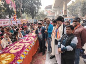 कानपुर-समाज कल्याण सेवा समिति द्वारा आयोजित पाँच दिवसीय ‘लावारिस शवों को कन्धादान अभियान’ का गुरुवार को भावुक माहौल में समापन हुआ अभियान के अंतिम दिन बौद्ध समुदाय की महिलाओं ने इंसानियत की मिसाल पेश करते हुए बढ़-चढ़कर शवों को कन्धा दिया, जो समाज में जाति-धर्म की बेड़ियों को तोड़ने का सशक्त संदेश था पोस्टमार्टम हाउस से लेकर अंतिम संस्कार स्थल तक शव यात्रा में शामिल लोगों का हुजूम उमड़ पड़ा इस दौरान कन्धा दानियों में महिलाओं की उपस्थिति उल्लेखनीय रही, जहाँ वे एक-दूसरे से कन्धा बदलते हुए नजर आईं। बिछड़े दुखी परिजनों की आत्मा की शांति के लिए तथागत गौतम बुद्ध और ईश्वर से प्रार्थना की गई पुरुषों द्वारा शवों पर फूलों की वर्षा की गई, जिसके चलते पोस्टमार्टम से एक किलोमीटर की दूरी तक सड़क फूलों से पटी रही। यह दृश्य लोगों को भावुक कर गया ‘बुद्धम् शरणम् गच्छामि’ के उद्घोष के साथ विदाई शव यात्रा के दौरान सभी मानव मात्र की एकता का संदेश देते हुए, लोग सामूहिक रूप से “हे मानव तू मुख से बोल बुद्धम् शरणम् गच्छामि, धम्मम् शरणम् गच्छामि, संघम् शरणम् गच्छामि” का उच्चारण करते हुए लावारिस शवों को अंतिम विदाई दे रहे थे। यह दृश्य मानवीय संवेदना और धार्मिक सौहार्द की अद्भुत मिसाल पेश कर रहा था इस मौके पर शव यात्रा में शामिल लोगों को संबोधित करते हुए समिति के सचिव, धनीराम पैंथर ने इस मुहिम के महत्व पर प्रकाश डाला। उन्होंने कहा कि यह अभियान सभी धर्मों के लोगों की भागीदारी से सफल हो रहा है उन्होंने ज़ोर देकर कहा, “हमारा मकसद यही है कि जाति धर्म का बन्धन तोड़ो, इन्सानियत से नाता जोड़ो।”धनीराम पैंथर ने बताया कि समिति विगत 17 वर्षों से गंगा को प्रदूषण से बचाने के लिए भी सक्रिय रूप से कार्य कर रही है उन्होंने महत्वपूर्ण जानकारी देते हुए बताया कि अब तक 16,700 लावारिस शवों का ससम्मान अंतिम संस्कार कराया जा चुका है उन्होंने कहा, “अगर हमने इस मुहिम को न चलाया होता, तो इतनी लाशों को गंगा में बहाया जाता और गंगा को प्रदूषित किया गया होता।” उन्होंने सभी से अपील करते हुए कहा कि “आइये हम सब मिलकर इस मुहिम को और साकार रूप में अग्रसर करने का बीड़ा उठाये
