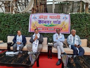कानपुर नगर । 2021 कानपुर प्रांत में विभिन्न खेलों का आयोजन कराने व राष्ट्रीय अधिवेशन के लिये प्रान्त और जिले के पदाधिकारियों को सक्रिय करने के उद्देश्य से उत्तर प्रदेश में 4 दिवस के प्रवास के दौरान कानपुर पंहुचे क्रीड़ा भारती के राष्ट्रीय महामंत्री व क्रीड़ा संगठन महाराष्ट्र में कबड्डी व कुश्ती खिलाड़ी,राज चौधरी ने प्रेसवार्ता के दौरान कहा कि
