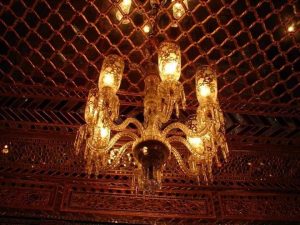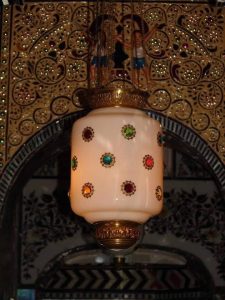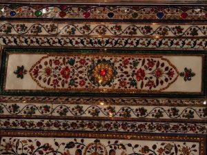 कांच के टुकड़ों से तराश कर चित्रकारी की गई है जो भव्य मेहराब है,