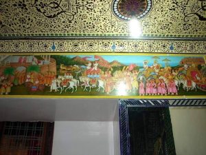 दीवारों पर बिहार के उम्मेद शिखर जहां 20 तीर्थ कर को मोक्ष प्राप्त हुआ था, उनकी कलाकृति से उनको उबेर आ गया है